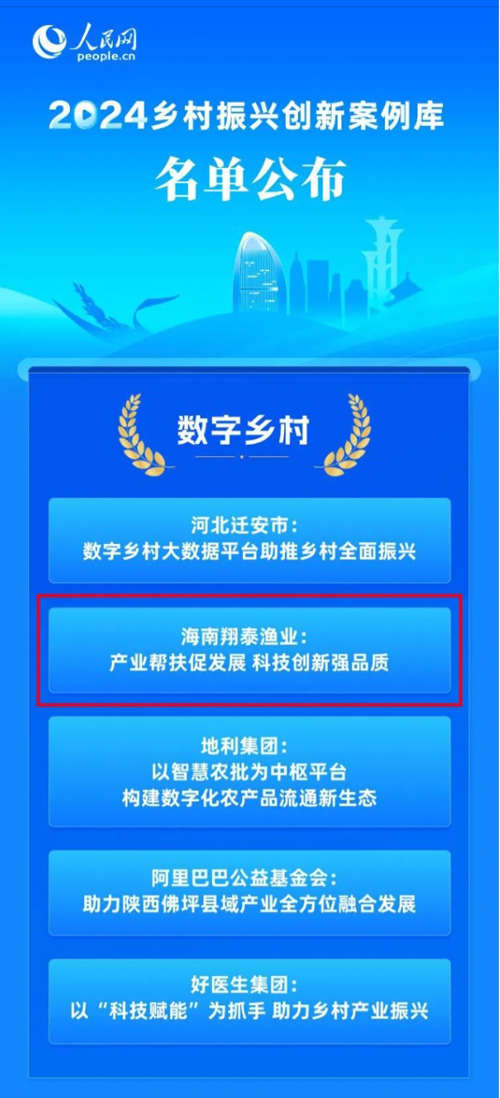 近日,由人民網(wǎng)主辦的“2024鄉(xiāng)村振興大會”暨“百日直播”數(shù)商興農(nóng)系列推介在北京舉行。在大會現(xiàn)場,“2024鄉(xiāng)村振興創(chuàng)新案例庫”正式上線,為鄉(xiāng)村振興的持續(xù)發(fā)展注入了新的動力。海南翔泰漁業(yè)股份有限公司 “產(chǎn)業(yè)幫扶促發(fā)展,科技創(chuàng)新強(qiáng)品質(zhì)”案例成功入選。